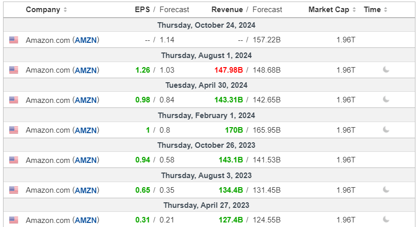 When we analyze Amazon’s latest results from a macro perspective, the company has been consistently beating market estimates, as we can see below.