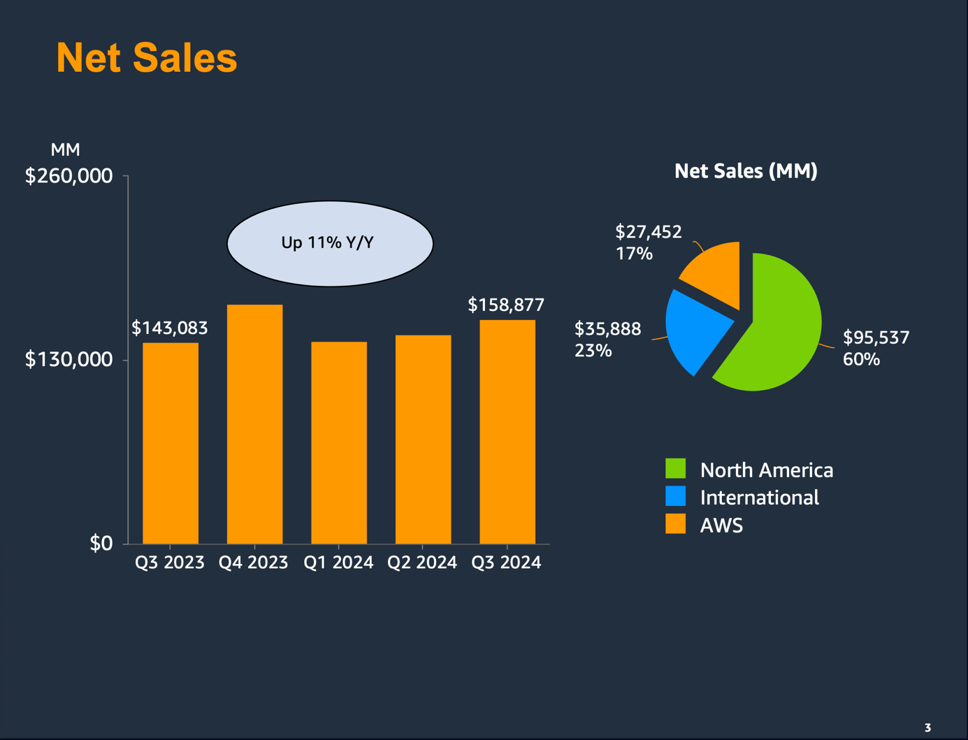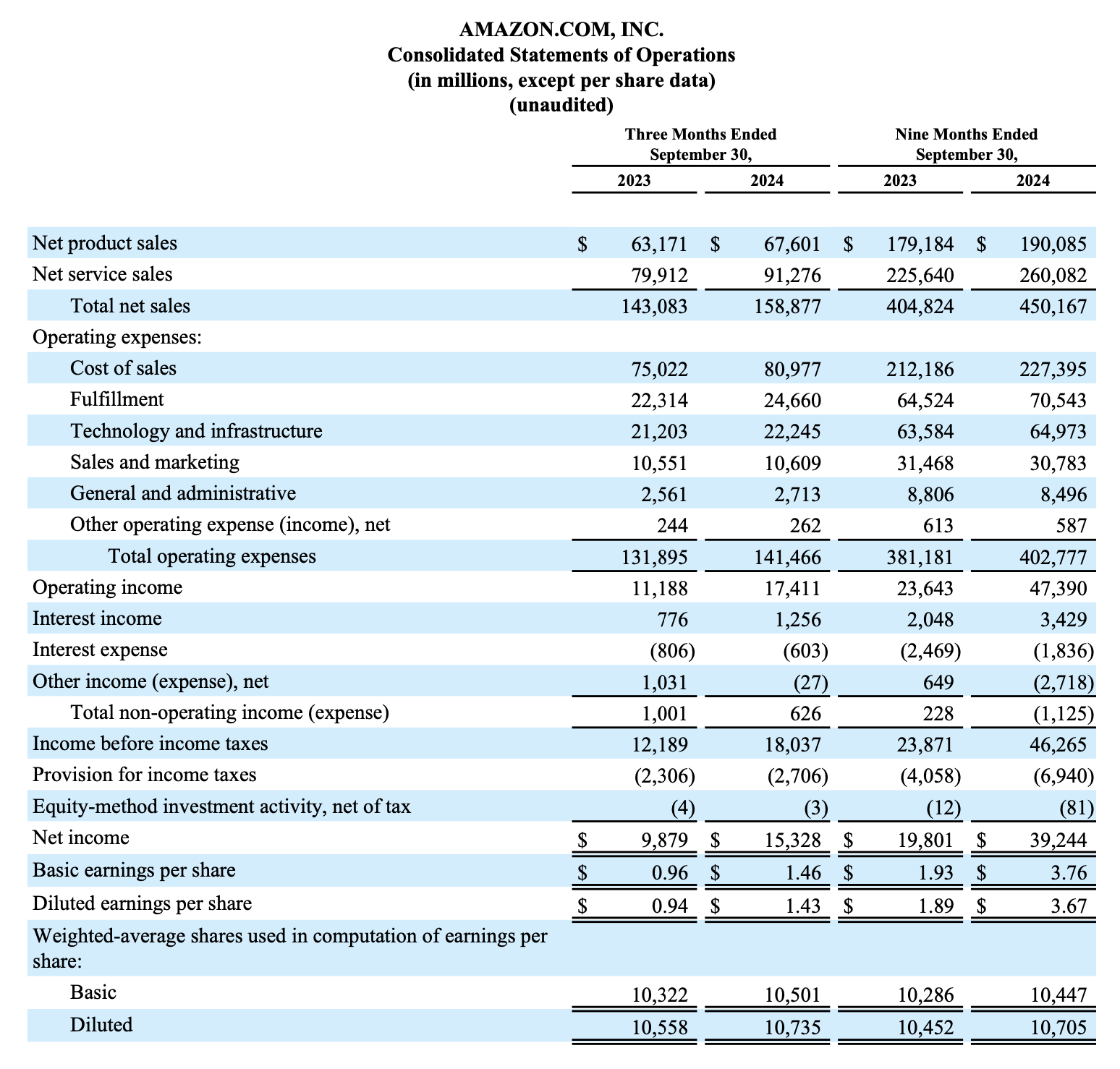 When looking at the top line in more detail, net product sales increased 7.0% year-over-year to $67,601 million and net service sales increased 14.2% year-over-year to $91,276 million. Additionally, all three segments contributed to revenue growth with sales in North America growing 8.7% year-over-year, International sales growing 11.6% year-over-year and AWS sales growing 19.1% year-over-year. Aside from all three segments contributing to top line growth, all three also contributed to operating income.