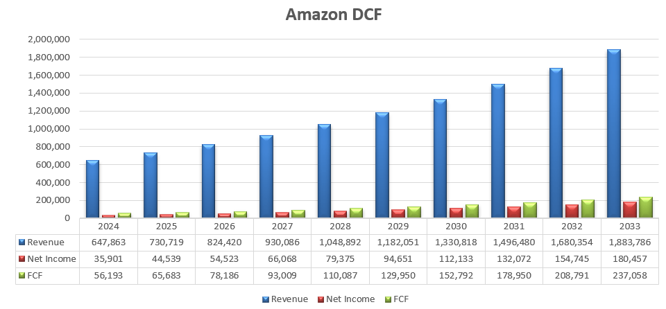 Considering all the revenue growth in each segment as discussed above, Amazon’s total revenue is projected to grow at 12.5% in FY24, primarily driven by AWS, advertisement, and 3rd party seller services.