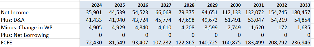 The free cash flow to equity (FCFE) is calculated in the table below: