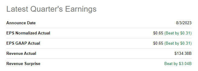 Amazon has guided for third-quarter revenues of $138.0-143.0B, which translates to up to 13% top line growth year over year. At the same time, Amazon said that it expects $5.5-8.5B in operating income in Q3’23. Strong Prime Day sales in July likely supported Amazon’s optimistic guidance for the third-quarter.