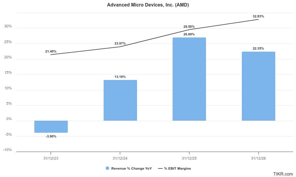 Despite that, AMD’s data center growth profile should remain the company’s critical underpinnings in lifting buying sentiments in the stock. Hence, the opportunity for operating leverage growth should keep investors onside while awaiting more clarity on its AI revenue growth spurt through 2026.