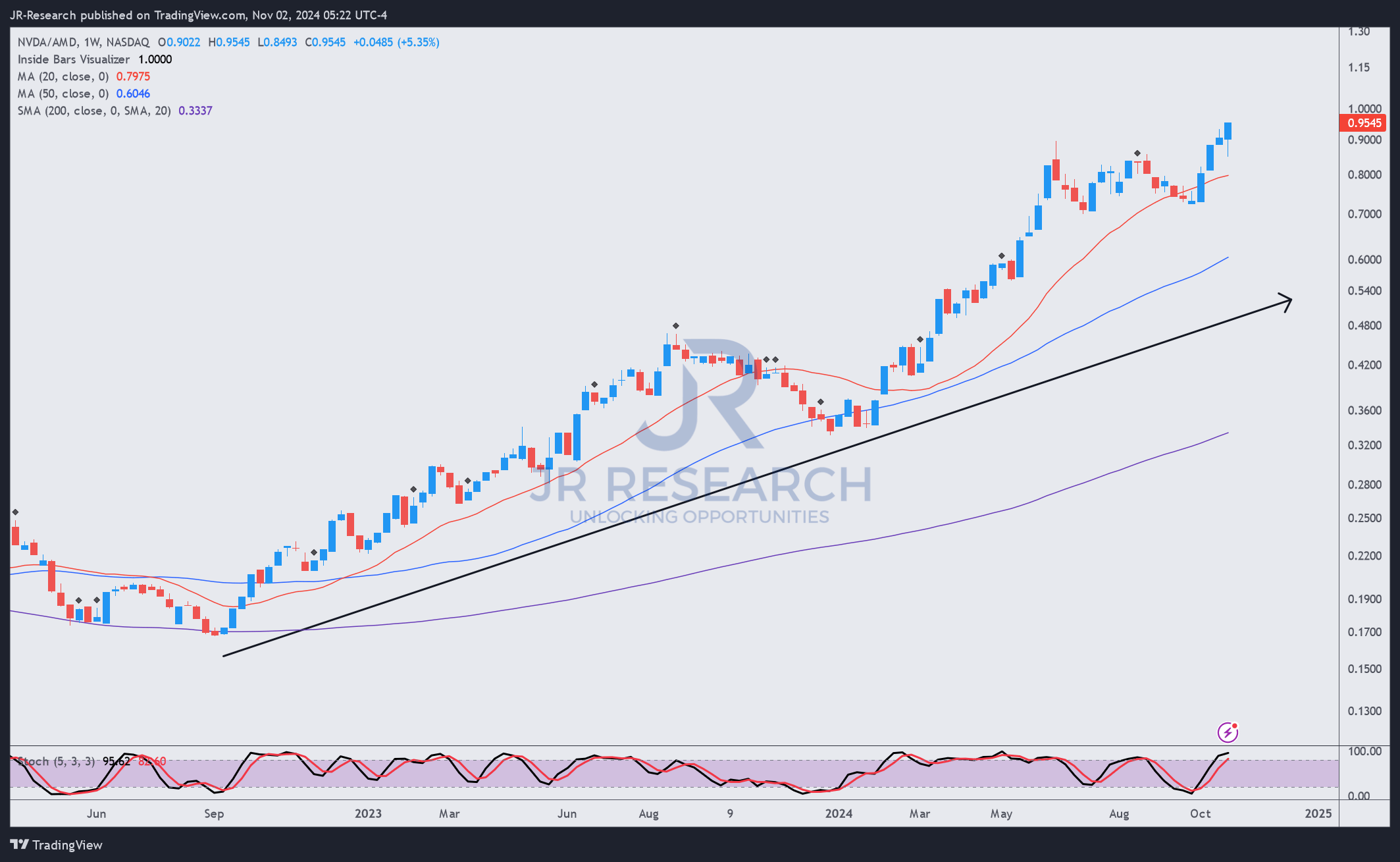 NVDA/AMD price chart (weekly, medium-term, adjusted for dividends) (TradingView)