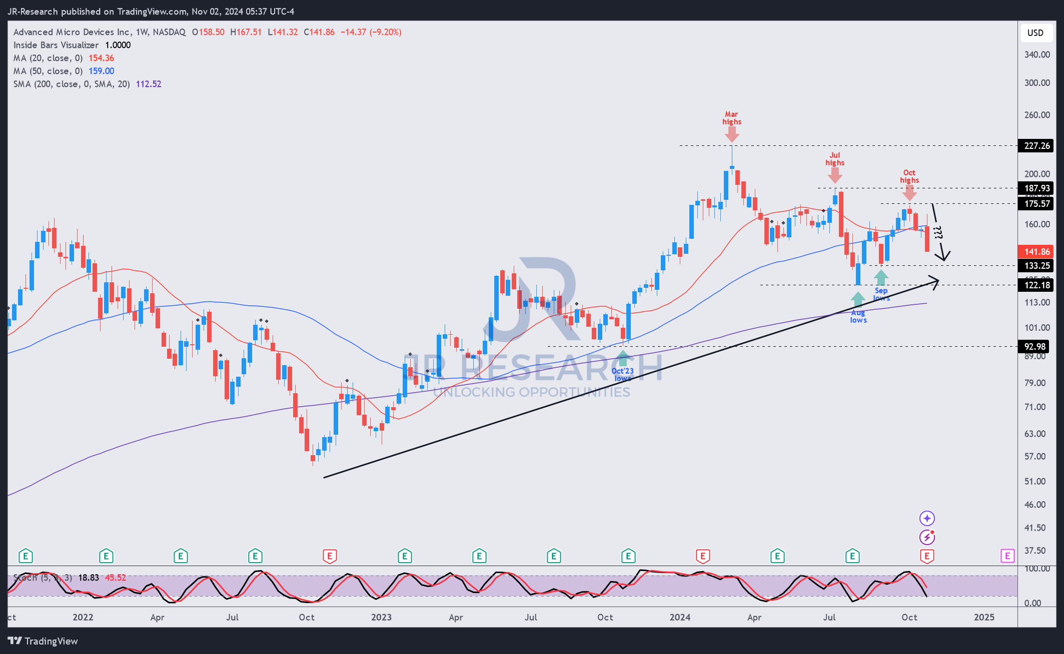 AMD price chart (weekly, medium-term, adjusted for dividends) (TradingView)
