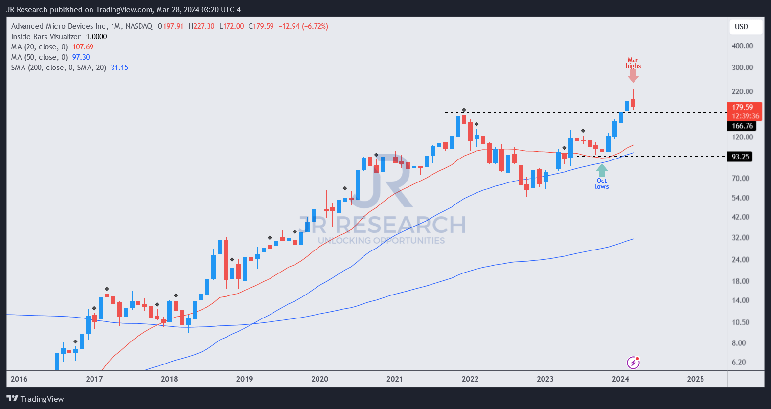 - Unless we get a steeper pullback, I urge investors to stay out and avoid chasing AMD further.