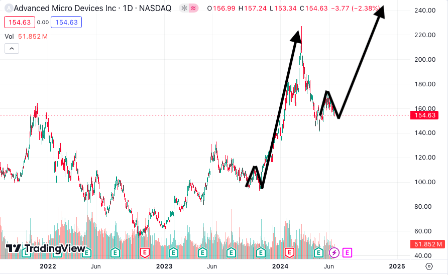 The most apparent risks to this thesis would include a broad market selloff that takes most everything down, and AMD with it, as well as AMD breaching what appears to be its present support. I believe that this support is in the mid $140s. This level acted as temporary resistance during AMD’s spike in late 2023 and into early 2024, and later acted as support in April and May of this year. I expect that level to be supportive again, if tested between now and AMD’s August 6th reporting. If AMD stock were to breach the mid $140s, and especially on a weekly closing price, I would lose conviction on this potential near term spike higher.