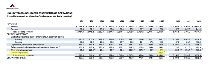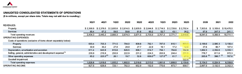 AMT has been struggling to get their rent paid in India since the start of this year, as laws aren’t as easily enforceable in emerging markets as they are in the US. Little progress has been made so far, AMT recorded $322 Million in goodwill impairment charges in Q3 and promised to finalize a strategic review of the business by the end of the year.