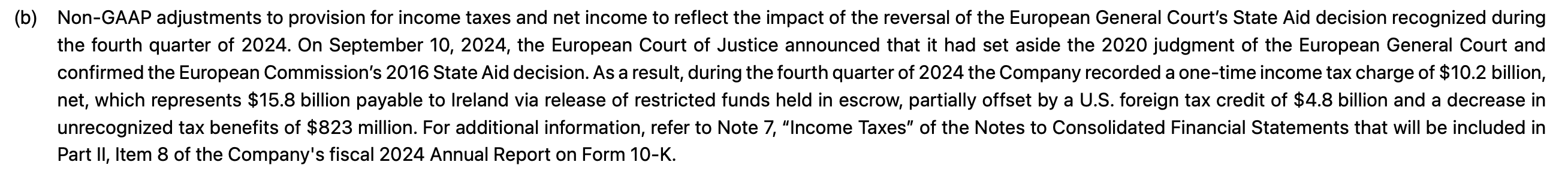 Although net income fell on paper from $22.96BN to $14.74BN in the fourth quarter on a year-over-year basis, investors should note that this was largely due to a one-time tax charge of $10.25BN. This was due to a negative state aid decision by the European Commission in 2016, which received an additional ruling from the European Court of Justice in 2020, but was eventually overruled in September of this year.
