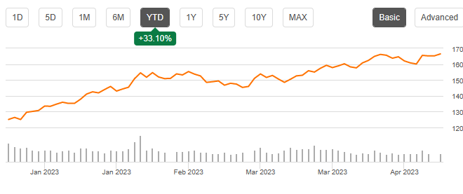 - A rally in Apple Inc. shares since January 2023 has seen the share prices increase over 34%, with current prices hovering around the $168 mark.