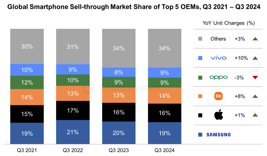 According to IDC, Apple’s smartphone market share in China decreased YoY once again in Q32024. Meanwhile, Huawei has significantly expanded its domestic market share YoY. If this trend continues, Apple might lose its second spot in the Chinese market by the end of this year, which would make for quite an unfavorable headline.