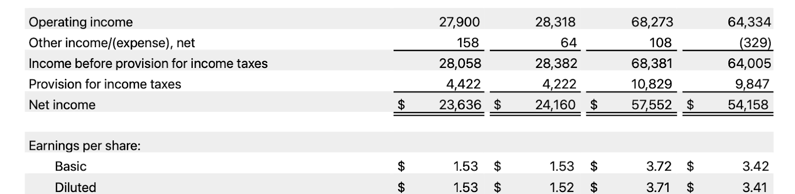 Net income was quite stable after accounting for increased operating expenses and a higher income tax rate, with earnings per share actually growing due to the famous share repurchase program.
