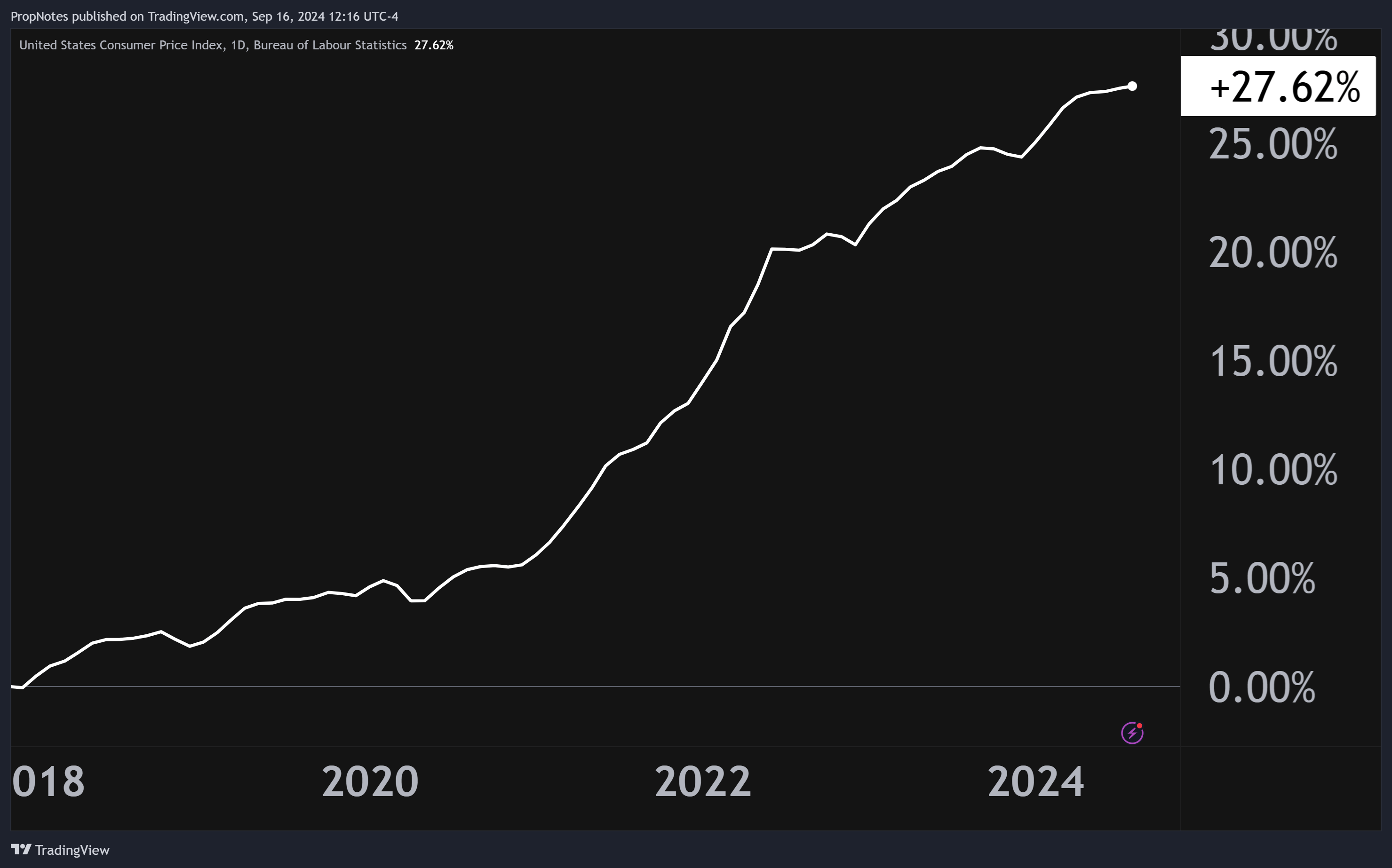 What is going on here? Since November of 2017, the CPI has increased considerably, by nearly 28%: