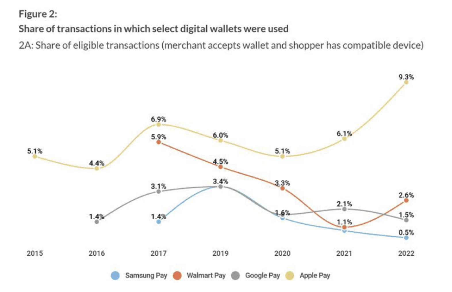 While Apple Pay is relatively new compared to competitors such as Google Pay (GOOG) (GOOGL) and Amazon Pay (AMZN), it has been growing much faster thanks to the massive existing customer base. As shown in the chart below, Apple Pay’s market share in digital wallets has almost doubled from 5.1% in 2015 to 9.3% in 2022, while peers’ market share has generally been trending down. Thanks to the rising penetration rate, the estimated in-store transaction value of Apple Pay has also grown from $91.7 billion in 2021 to $199.4 billion in 2022.