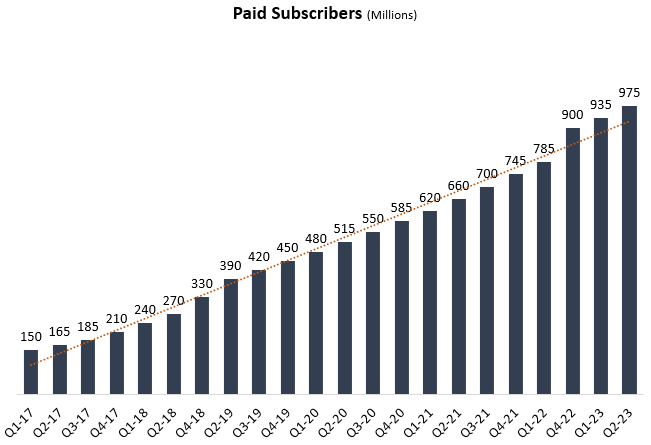 • The ecosystem strategy is unstoppable, as Apple is set to surpass 1B subscribers in the upcoming quarter, after gaining an additional 40M in Q2, despite headwinds in gaming and ads.