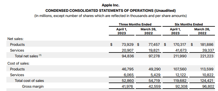 Apple’s product revenues in FQ2’23 declined 4.6% year over year to $73.9B due to weakness chiefly in consumer spending which has been reflected in a drop in global device shipments. Apple’s Services revenues, however, grew 5.5% year over year to $20.9B and reached an all-time record. Services revenues now account for 22% of total revenues, showing an increase of 2 PP year over year. Apple’s Services includes revenues from the sale of ads, AppleCare, digital content, Cloud, digital payments and other services and it is a fast-growing business for Apple with which the company can offset moderating growth in its mature product portfolio.