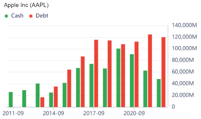 The cash-debt position, however, is not as good as it used to be several years ago. The company used to be virtually free of debt compared to where it is now. But Apple is expanding after all and cannot afford to have lots of idle cash.