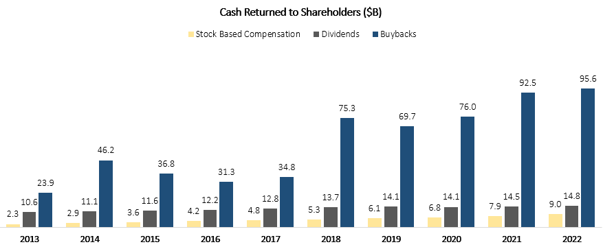 Created and calculated by the author based on data from Apple’s financial reports and earning calls