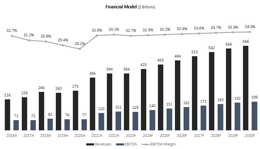 Created and calculated by the author based on data from Apple’s financial reports and the author’s projections
