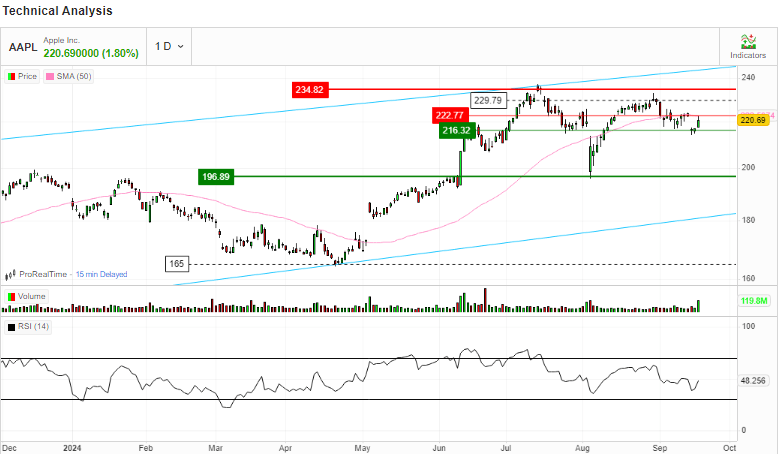 • The stock fell 3% due to lower iPhone 16 demand, but I believe the delayed features and economic factors are temporary challenges.