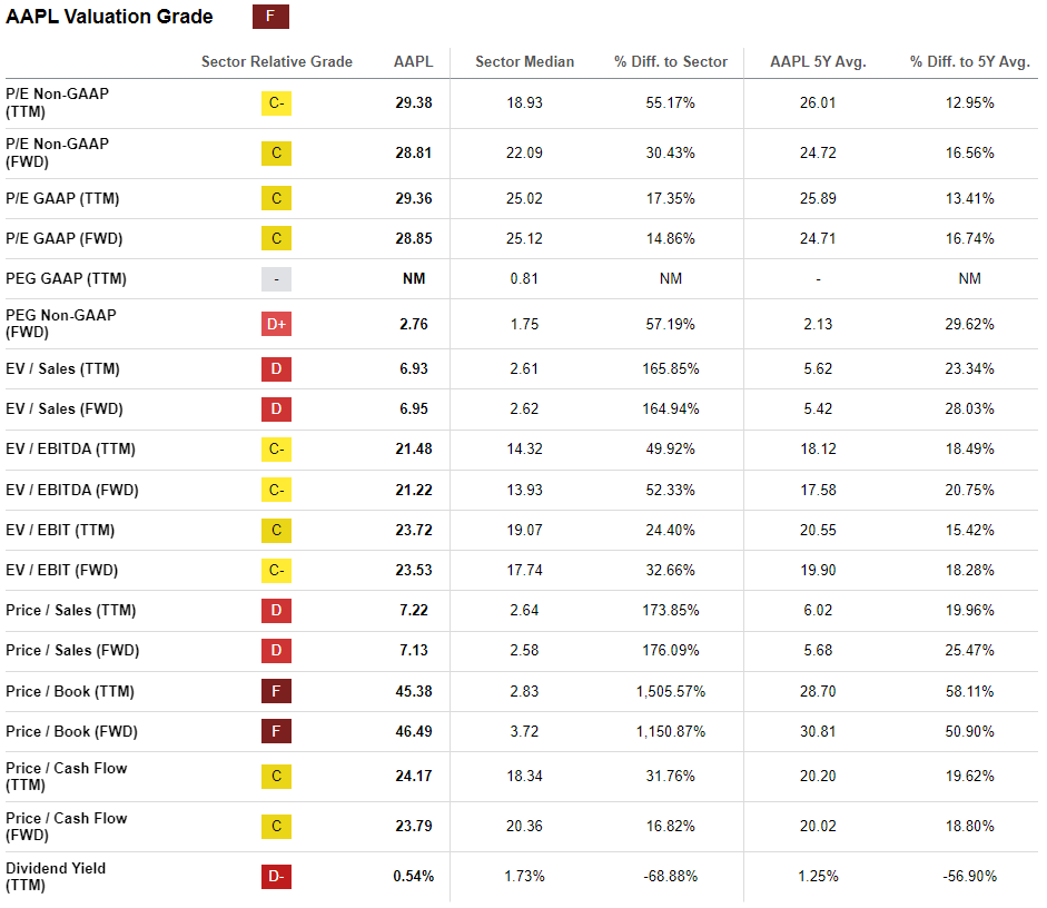 So let’s have a look at some valuation metrics, to understand the valuation of Apple better.