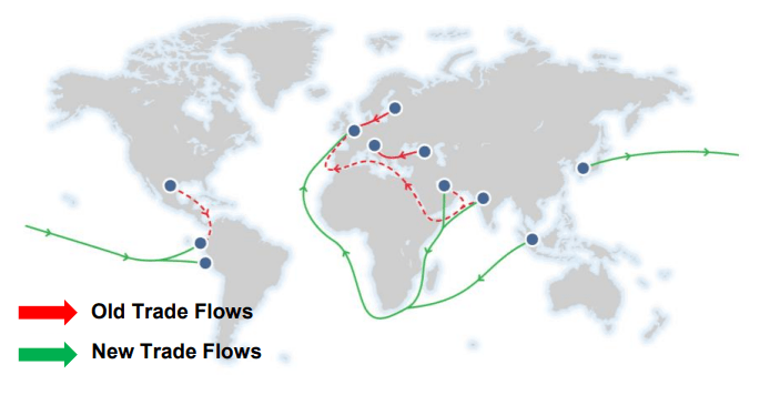 Part of the adaptations made by ASC for the new landscape is re-routing its supply lines. Many of the issues I mentioned at the beginning of this section have caused ships to be routed thousands of miles away from their old routes.