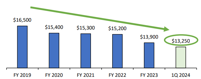 These profit margins are increasing despite a de-leveraging that has taken place in line with rate hikes. ASC did not want to pay out too much on its debt, so it has dramatically reduced its leverage, down by almost 85% in the last five years.