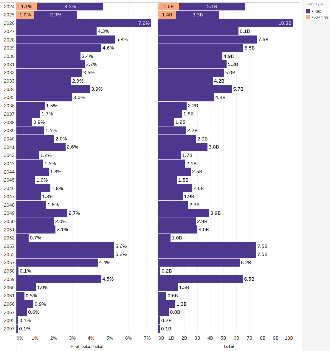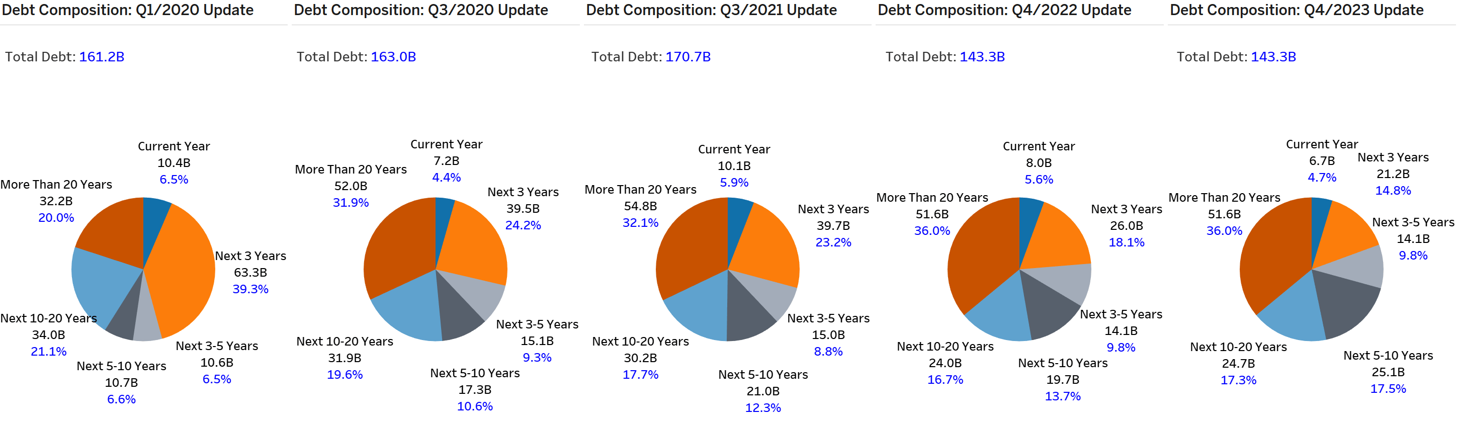 - By the end of Q4/2023, 24.8% of total long-term debt was due within the next 5 years
