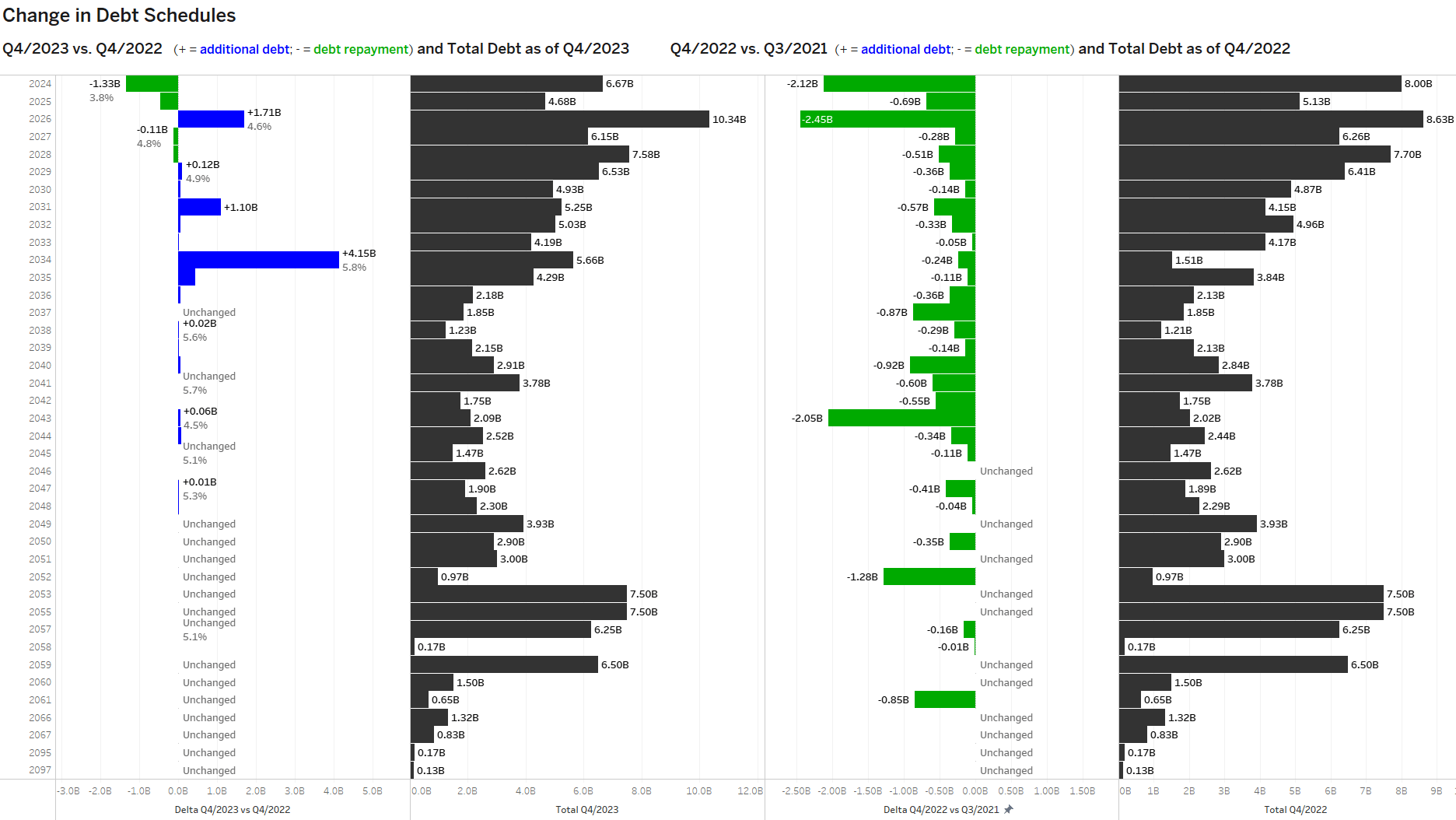 AT&T – Change in Debt Schedules Q4/2023 Update vs Q4/2022 Update (Designed by author)