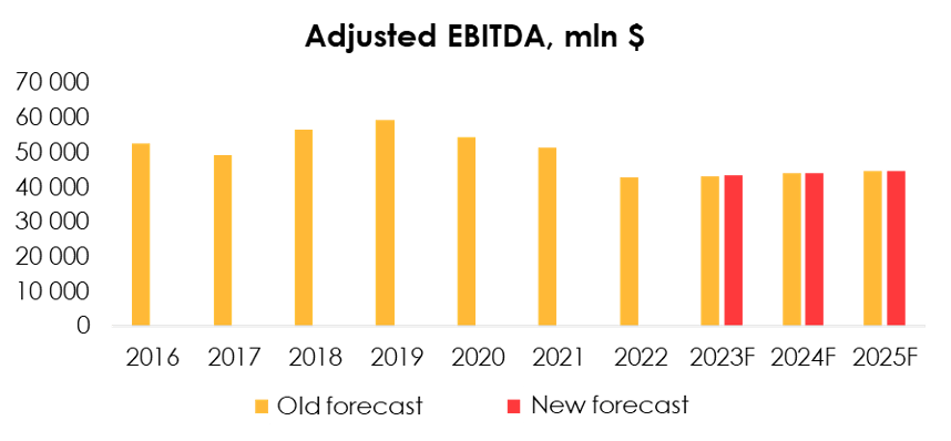 - the shift of the FTM valuation period (we earlier included the period from 2Q 2023 through 1Q 2024 into the forward 12 months EBITDA forecast, while now the forecast period runs from 3Q 2023 to 2Q 2024).