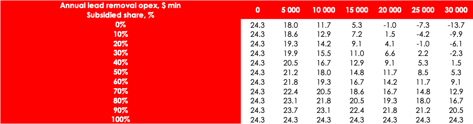 After recent management comments we decided to not include possible lead obligations in the valuation.