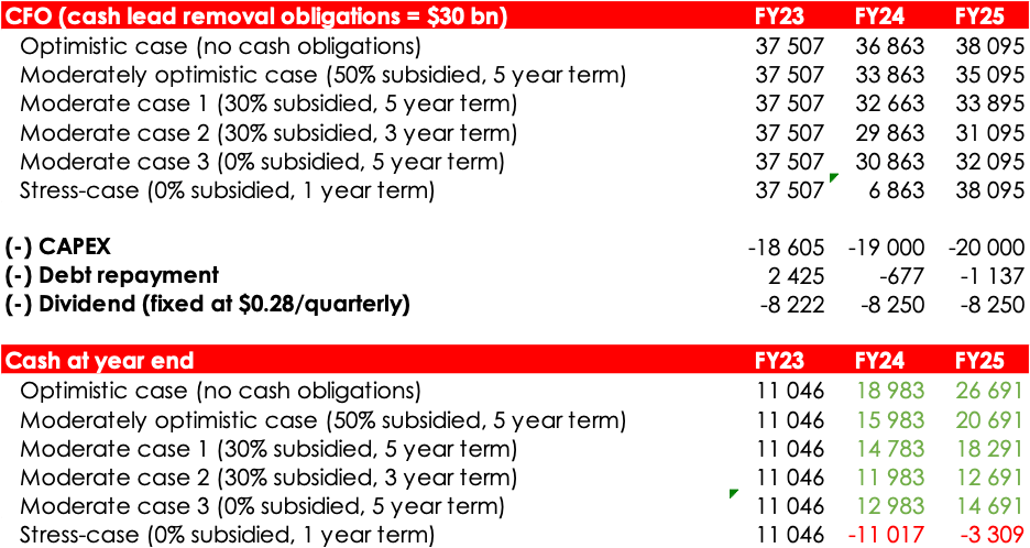 As soon as the article was published, we analyzed how badly it could affect AT&T’s business. Initially, we assumed that the government would partially subsidize the telecoms’ plans to remove lead wire (e.g. via the BEAD program).