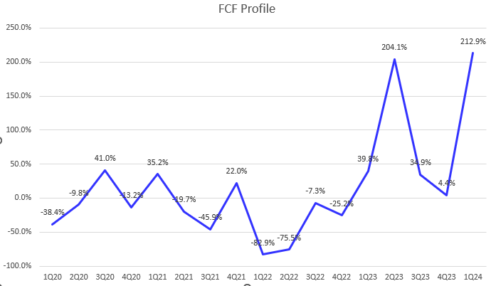 The management also reiterated FY2024 FCF guidance in the $17 to $18 billion range. Although this indicates a potential decline in FCF in 2H FY2024, I believe that the guidance might be conservative and will likely exceed $18 billion.