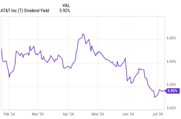 As most of T’s returns so far have been driven by the price appreciation component, the dividend yield has decreased accordingly. The yield has dropped from around 6.5% to 5.9%, which makes the stock a bit less attractive for yield-seeking investors.