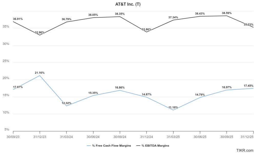 Coupled with the recent divestment of its DirecTV stake, it has clarified the company’s focus, allowing it to improve its debt-leverage ratio. Accordingly, AT&T emphasized that it’s on track to achieve an adjusted EBITDA leverage ratio of 2.5x in the first half of FY2025 compared to the 2.8x it reported in Q3. Moreover, the company reported a solid $5.1B in free cash flow in Q3, solidifying the market’s confidence in AT&T’s ability to achieve its FCF outlook of between $17B and $18B for FY2024.
