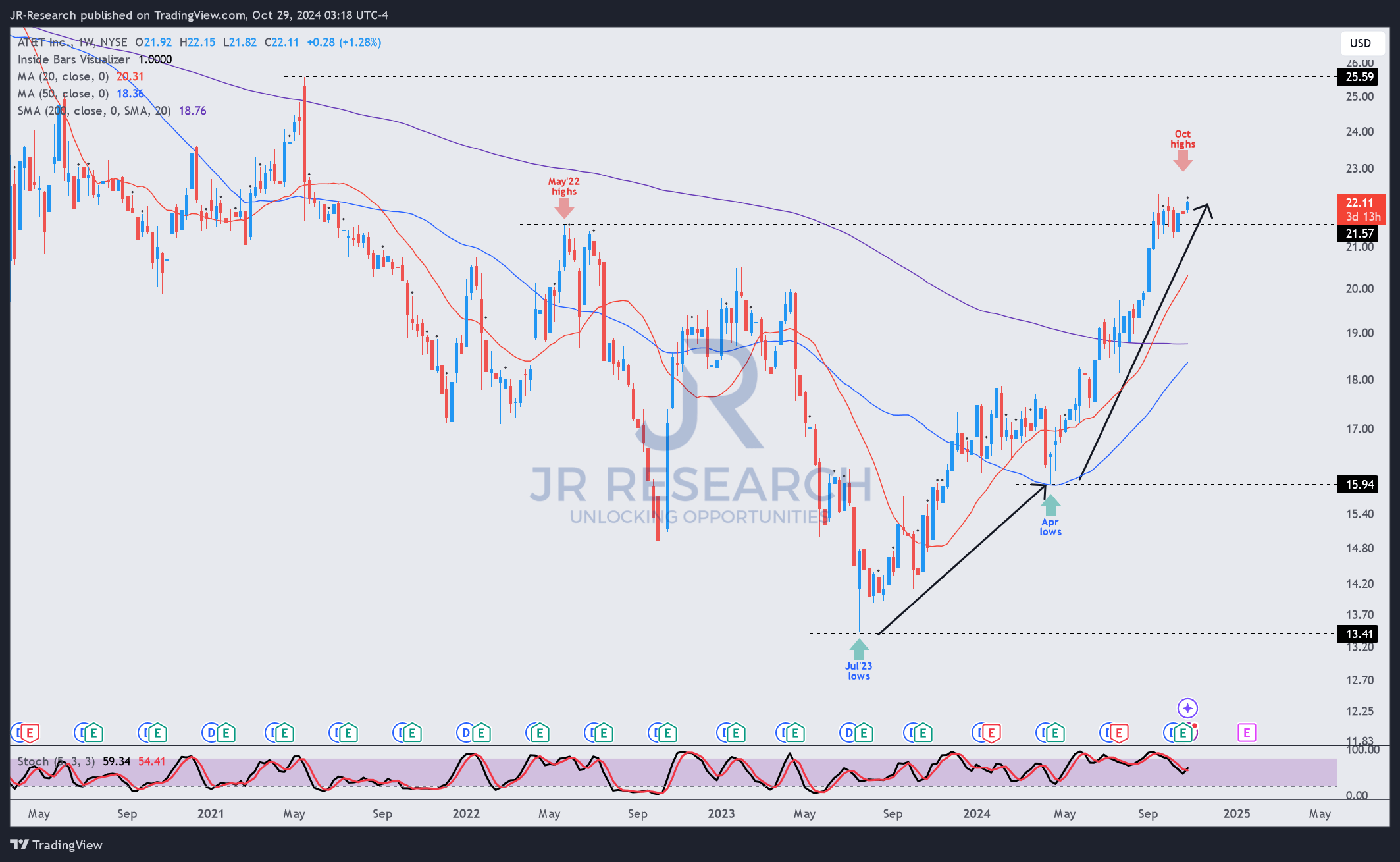 - Investors must remain cautious as T undergoes a consolidation, as investors are likely assessing its growth prospects.