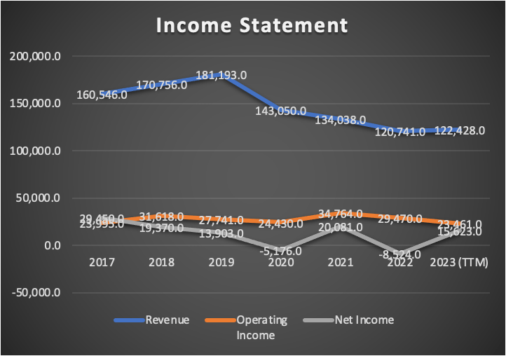 Furthermore, I mentioned what already was known: revenue decline is attributed to the shift from Pay-TV to streaming services, prompting considerations to sell or merge its stake in DirectTV. Additionally, a decrease in legacy voice revenues results from the rise of Over-the-Top [OTT] voice services, impacting businesses and potentially linked to concerns about data breaches.