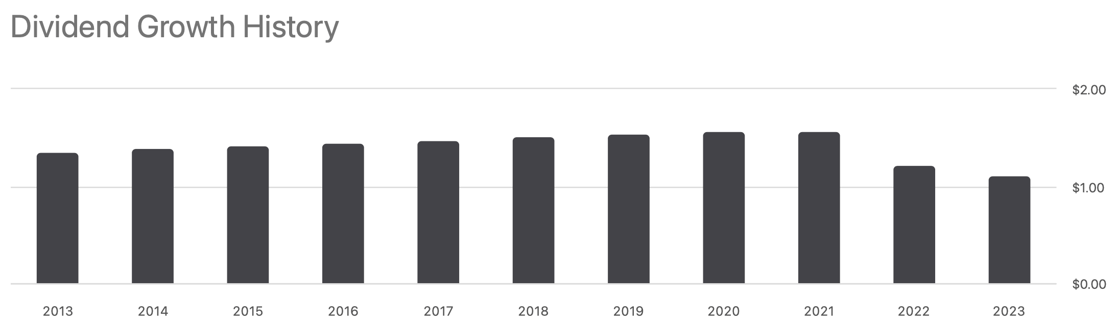 AT&T’s revenue has experienced a negative growth rate of -4% since 2017. The downturn began in 2020 during the pandemic, and despite expectations of an increase in revenue due to people staying at home, the decline persisted.