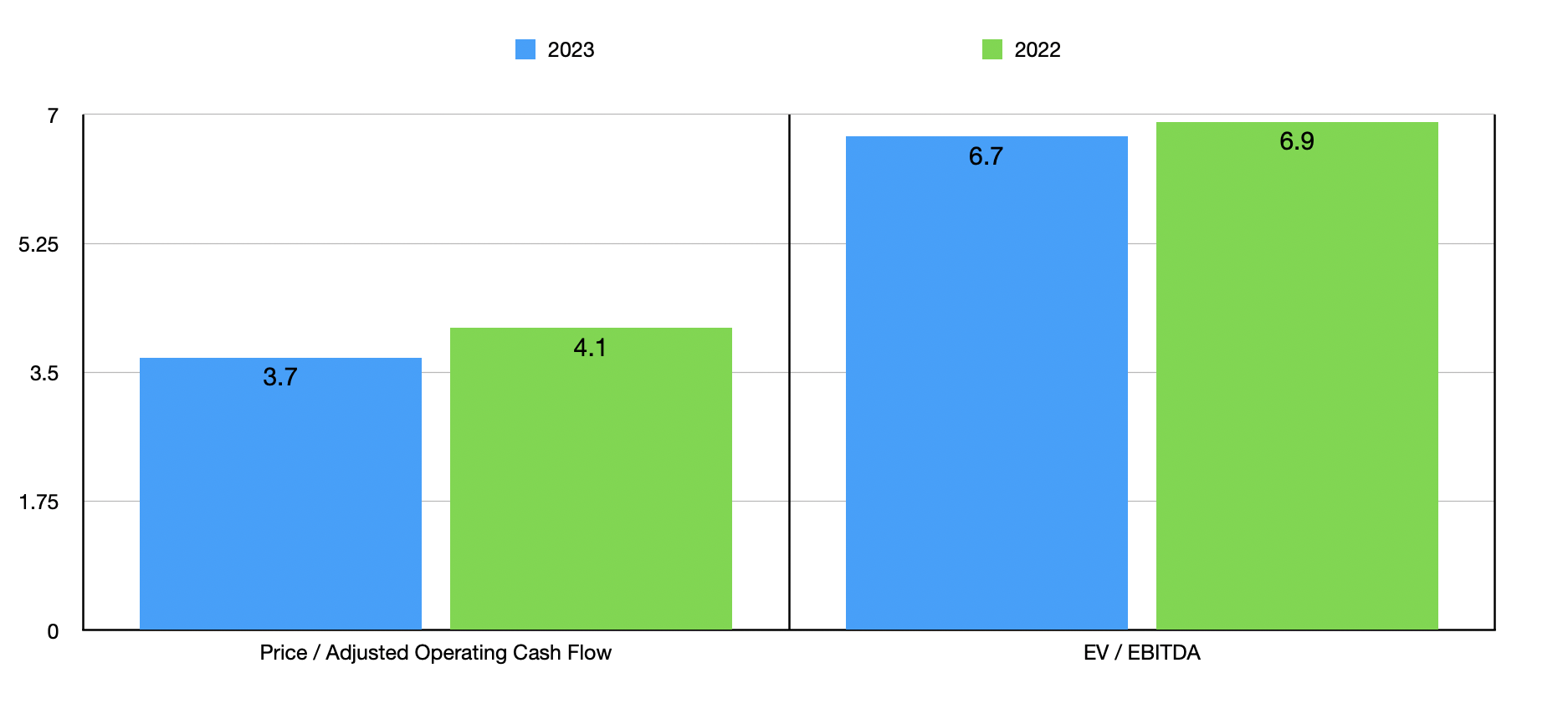 Despite shares rising nicely over the past year or so, the stock still looks very cheap in my opinion. Using the same calculations that I used the last time I wrote about the company, but factoring in its current market capitalization and enterprise value, I figured that the firm is trading at a forward price to adjusted operating cash flow multiple of 3.7 and at a forward EV to EBITDA multiple of 6.7. By comparison, using the data from 2022, would give readings of 4.1 and 6.9, respectively. To put this in perspective, rival Verizon Communications (VZ) is currently trading at a price to adjusted operating cash flow multiple of 4.5 and at an EV to EBITDA multiple of 6.4. These prices are similar to one another, but I would argue that both companies are attractively undervalued.