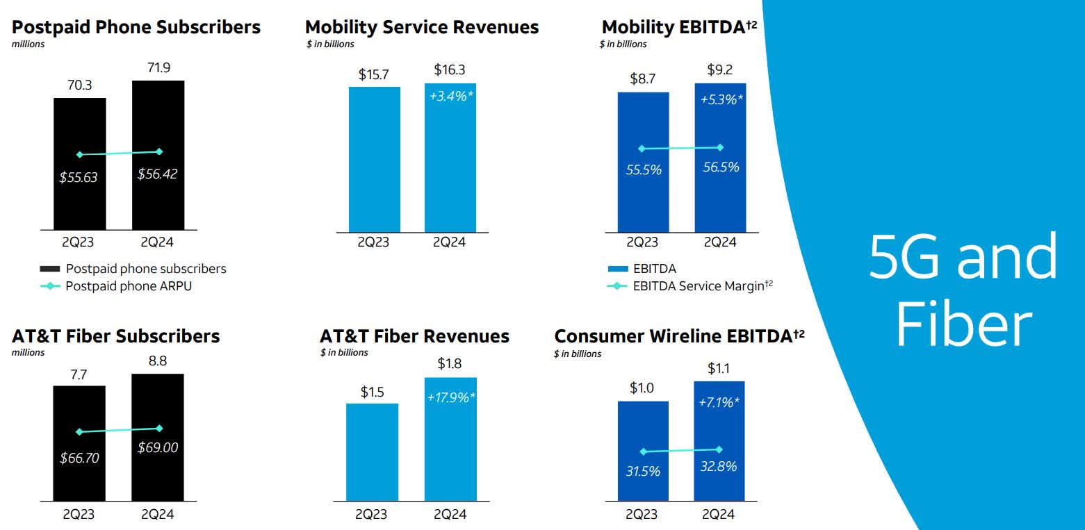 Despite the existence of wireline customers, AT&T is delivering on growing its fiber footprint. In the last year, the company has added 1.1 million fiber customers and grown fiber revenue by 18%. AT&T has also grown its ‘bread and butter’ cellular phone service with 1.6 million more phone subscribers and higher revenue.