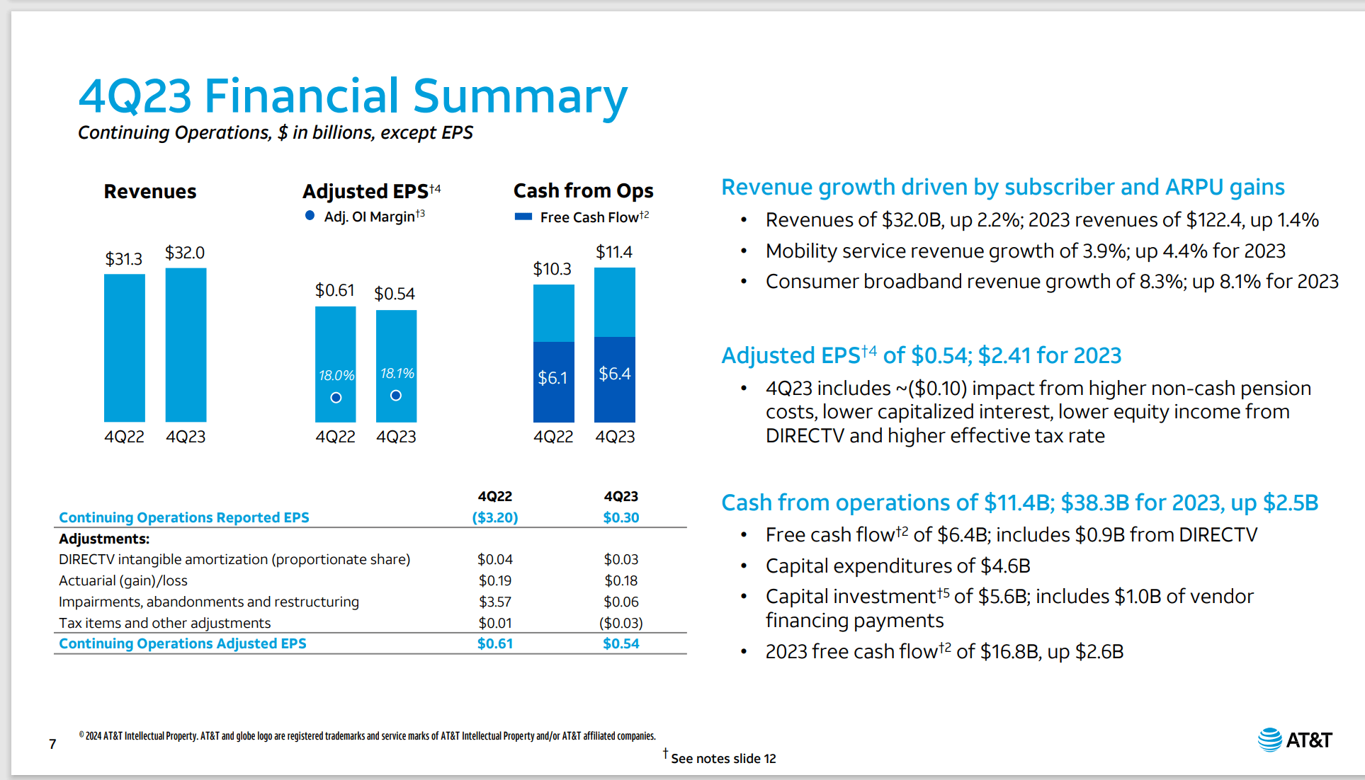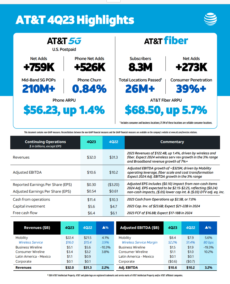 • AT&T Inc. had a successful quarter and year, beating raised guidance and putting controls in place to lower downside risk.
