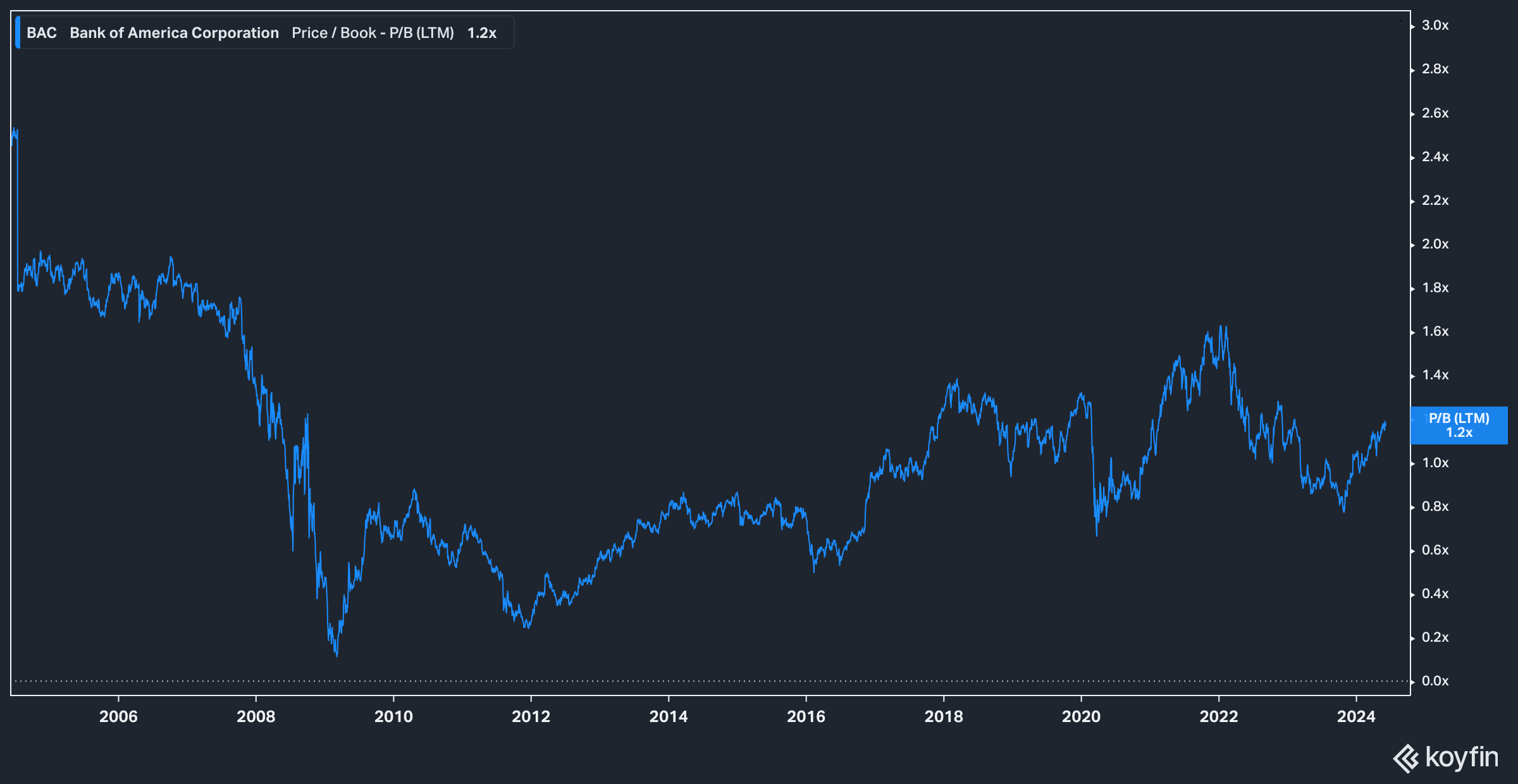 BAC Price to Book 20yr Chart (Koyfin)