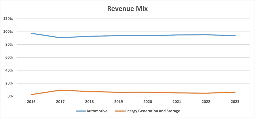 Despite the considerable attention this segment receives in the media, it contributes a minor share to the overall revenue. 94% of the revenue mix is related to the automotive segment.