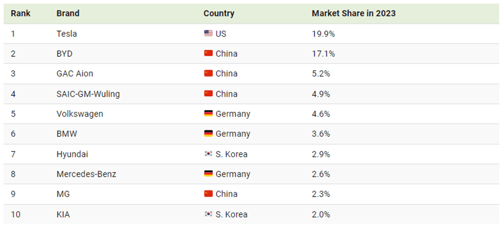Electric vehicles have a history that dates back to the early days of automotive development, but it was Tesla’s production of the Roadster in the 21st century that set a new standard for what electric cars could be. This is a great example showing how crucial Tesla’s position in the EV market has been so far. Although many brands introduced different models, Tesla protected its position thanks to its advanced technology. As of 2023, Tesla remained the top electric car seller, capturing nearly 20% of the market share.