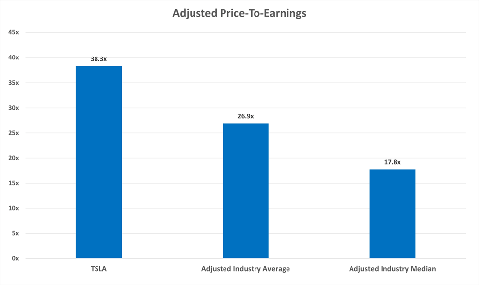 Currently, Tesla’s valuation is nearly double that of the median for the global car industry.