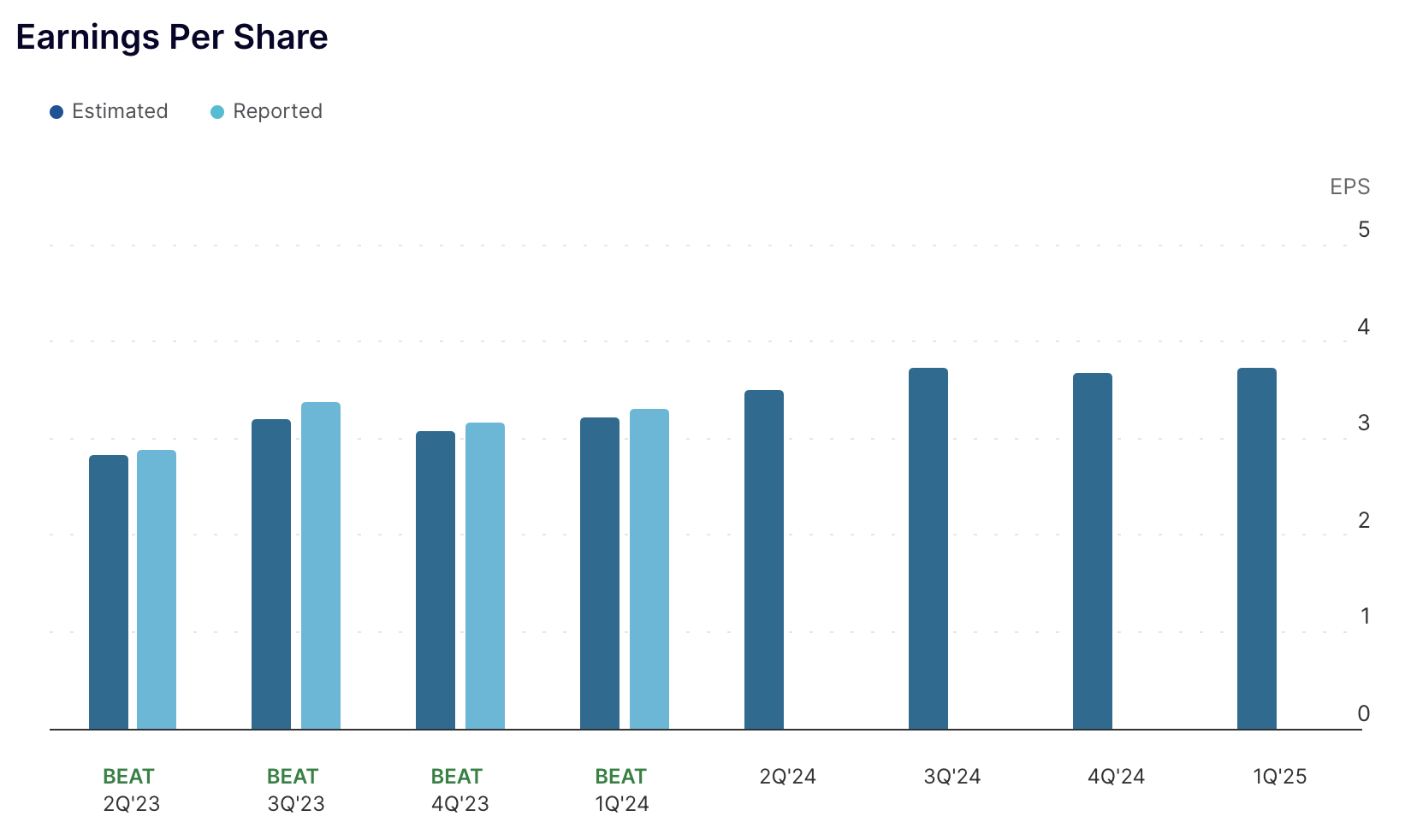 2Q24 is expected to see $3.51 in EPS, which would be 21% higher compared to the prior-year quarter!