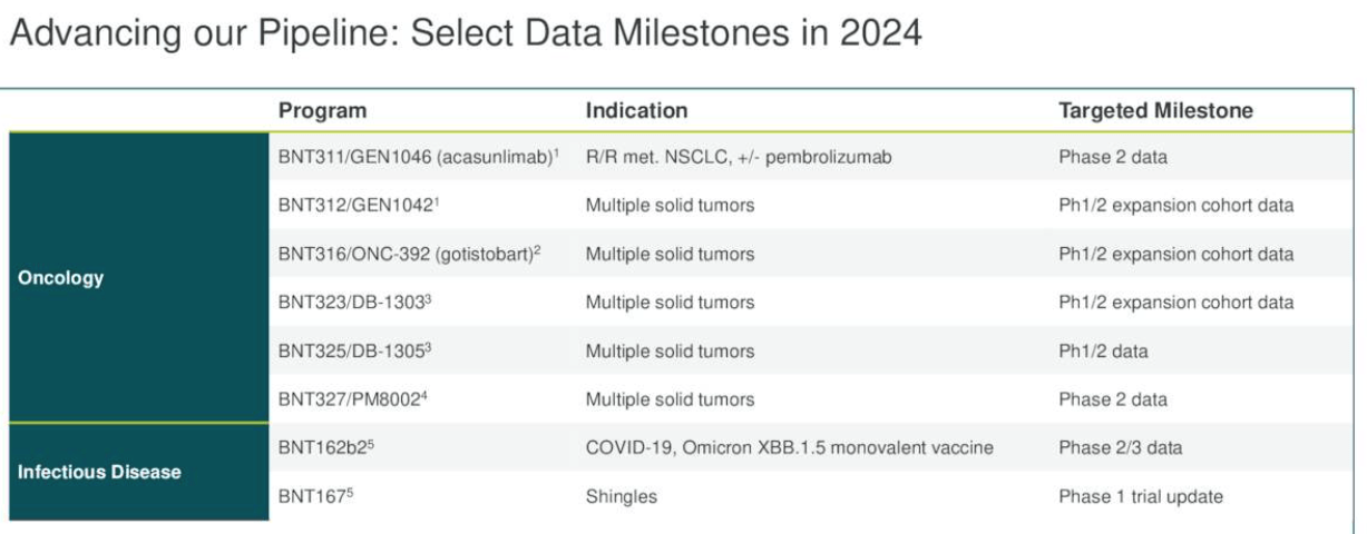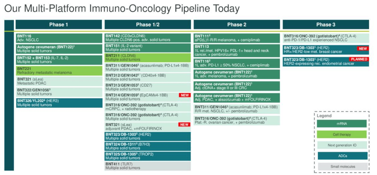 Breaking these down into individual programs/drug candidates, BioNTech has shared the following graphic: