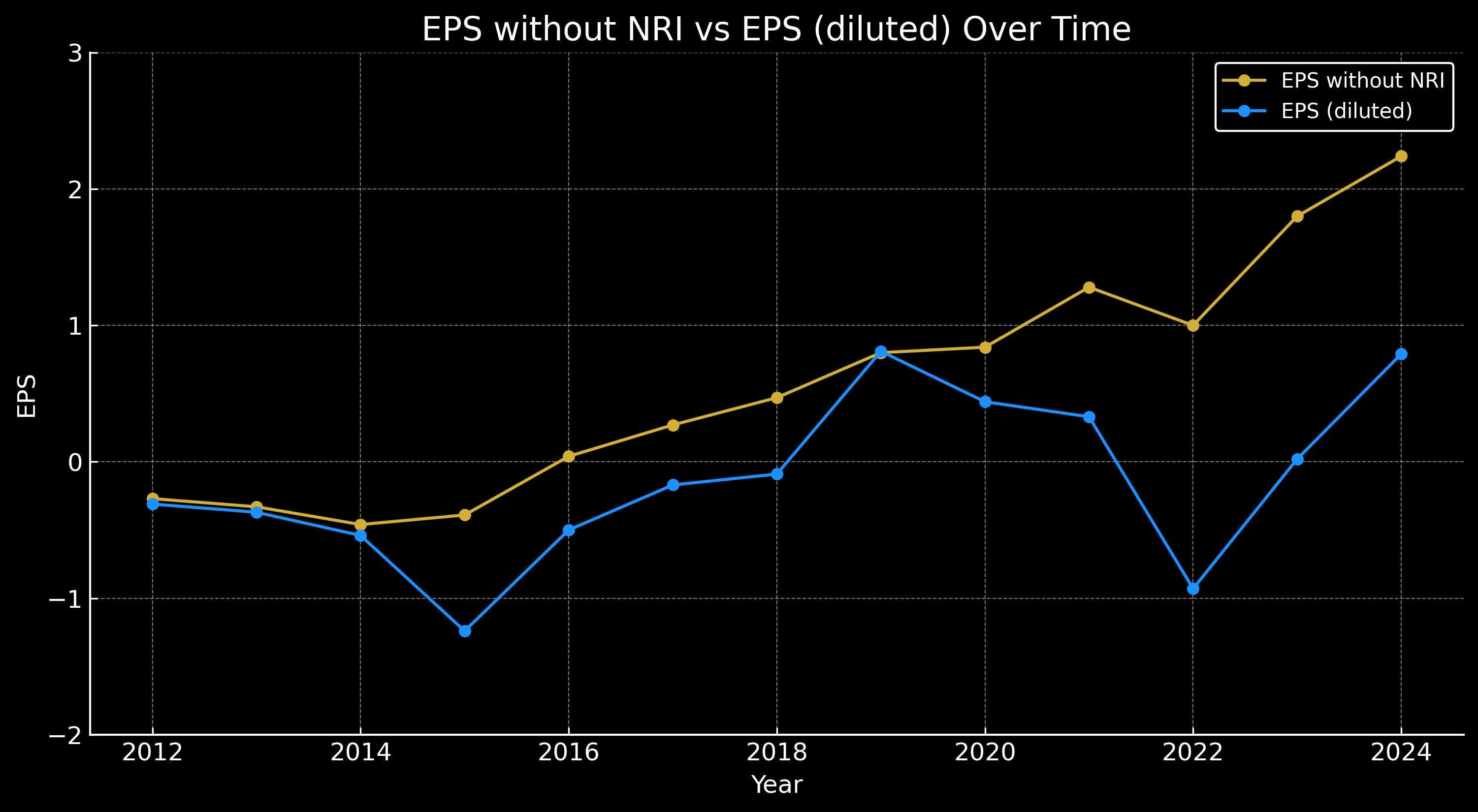 This makes a big difference to the discounted earnings analysis I am about to present, which takes into account earnings without non-recurring items. Using EPS without NRI regularly produces more reliable results in the market when value investing over significant time periods.