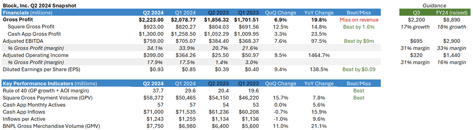 • Block has executed well in its renewed strategy and focus on operational efficiency, sustaining growth and improving profitability in Q2.