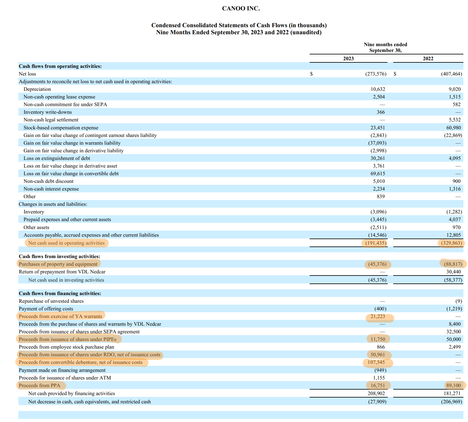 Net loss during the quarter was $112 million, a marginal improvement from a loss of $117 million in the year-ago comp with GOEV’s cash burn from operations from the trailing 9 months from the end of its third quarter at $191.43 million. These are substantial numbers. Bulls could argue that operational cash burn dipped from its year-ago comp of $329.86 million, but GOEV is trying to bring a high capital expenditure car to market while operating on shoestring liquidity. The company has also been issuing convertible debentures to tide over liquidity with $108 million of this issued in the 9 months from the end of its third quarter.