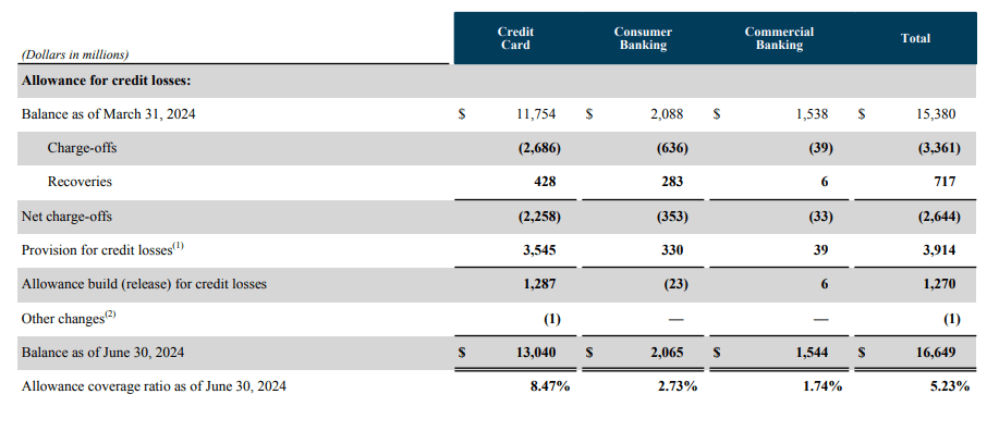 The company had $2.6 billion in total net charge-offs, the vast majority of which occurred within its credit card business, known for being much riskier. The company still built up $1.27 billion in net allowances, primarily due to the end of loss sharing with Walmart. Its overall balance here is $16.6 billion, which is quite strong.